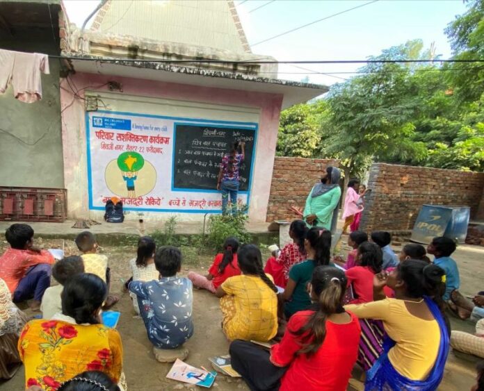 The situation is worse for children living in slums. Take, for instance, Shivaji Nagar which is a slum settlement in Faridabad, Haryana. The population consists of migrant labourers from nearby states. The location is home to a population of approximately 10,000-12,000 individuals. The families are engaged in low-paying jobs in nearby factories or are dependent on daily minimal earnings. Life in the slum is challenging because of the lack of basic facilities such as water, toilets and fresh air. Most houses have just one room with no ventilation, but serve as home for families with 5-10 members. Families cook, eat and sleep in one room. These resource and infrastructure constraints adversely impact the holistic development of children growing up in slums.